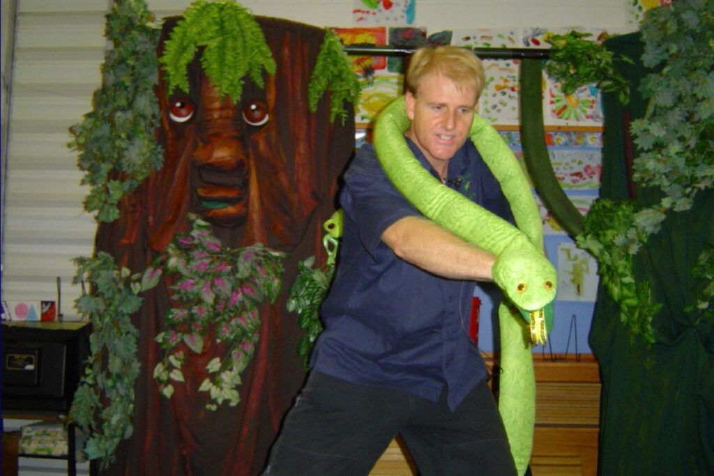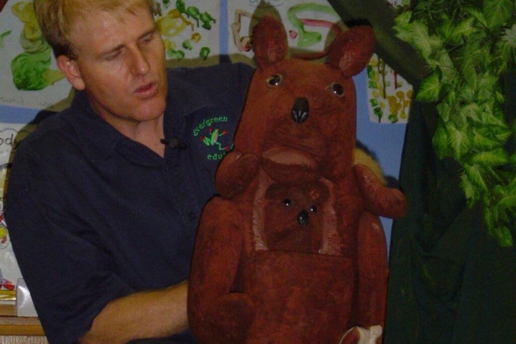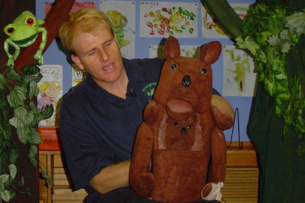 Evergreen Children’s Theatre is committed to excellence in the production of theatre experiences for children, reflected in the on-going upkeep and maintenance of the sets, props and puppets, most of which are carefully hand-crafted to reflect the authentic fauna and flora they portray. Naturally this professionalism is also reflected in the enthusiastic and professional manner of the puppeteer, Kevin Galland.